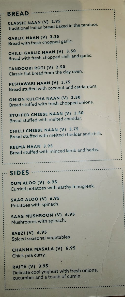The highlight of the menu includes an array of delectable sides such as Dum Aloo, Saag Aloo, and Channa Masala, each prepared with care to ensure authenticity and flavor. The Raita adds a refreshing contrast, perfectly balancing the spices.